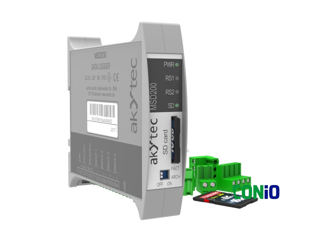 Záznamník dat MSD200 má dvě rozhraní RS485 podporující protokoly Modbus RTU a ASCII a čtyři analogové vstupy 0(4)-20mA. K dispozici je 64 kanálů pro sledování a archivaci dat. Data jsou ukládána na SD kartě. Integrovaný port USB umožňuje čtení dat a konfiguraci zařízení. Použití přiloženého programovacího nástroje umožňuje snadnou a pohodlnou konfiguraci a manipulaci s daty.